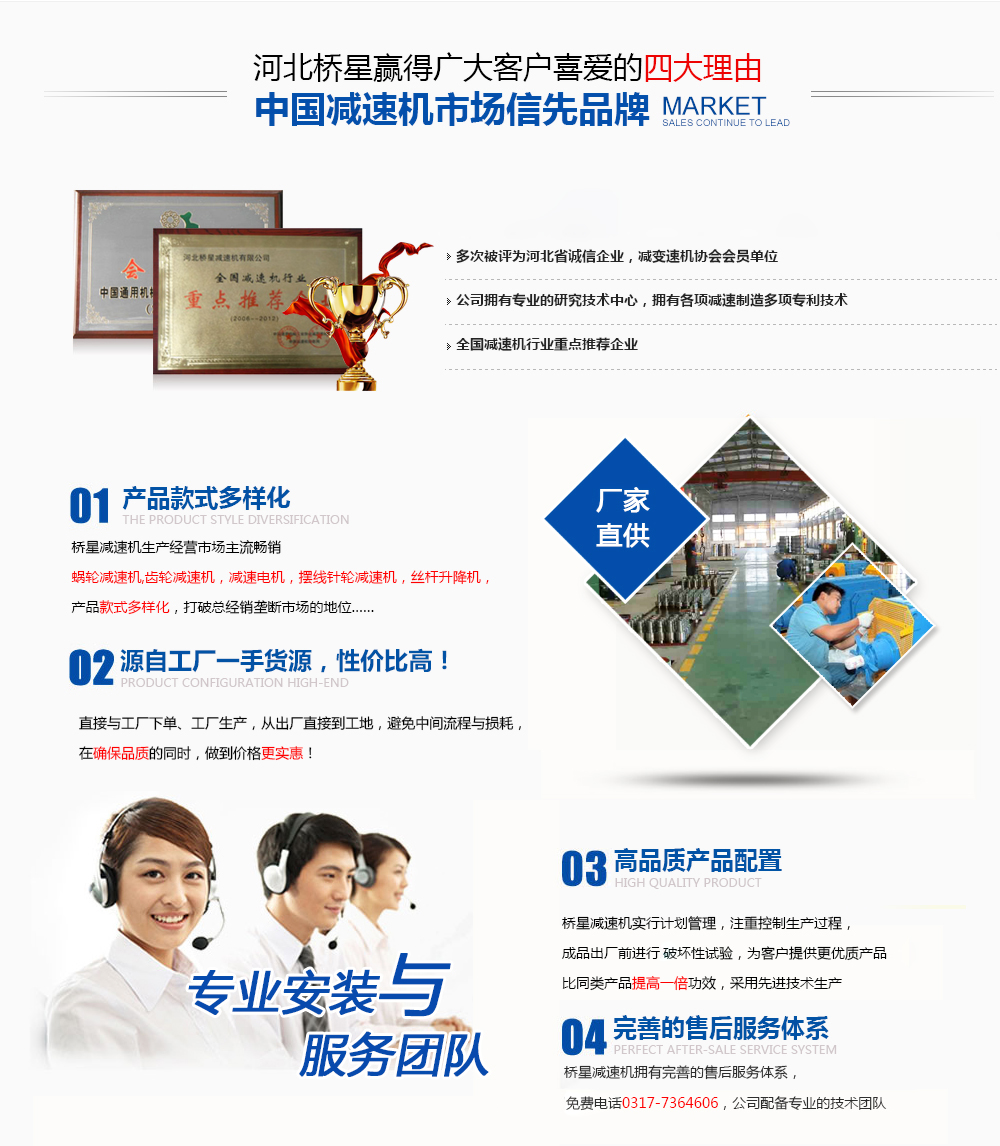 河北橋星減速機(jī)制造有限公司以強(qiáng)大的技術(shù)力量,大型精良的生產(chǎn)加工設(shè)備,采用新工藝和檢測(cè)設(shè)備,成功開發(fā)了蝸輪蝸桿減速機(jī)、蝸輪絲桿升降機(jī)、擺線針輪減速機(jī)、圓弧齒蝸輪、平面包絡(luò)、錐面包絡(luò)、圓柱齒輪、硬齒面、行星齒輪、R、S、K、F模塊化齒輪減速電機(jī)、諧波減速機(jī)等系列上萬種規(guī)格的減速機(jī),廣泛應(yīng)用于冶金、礦山、鋼鐵、起重、船舶、水泥、化工,食品、制藥、造紙等機(jī)械工業(yè)各部分的減速裝置。 河北橋星減速機(jī)制造有限公司座落于雜技之鄉(xiāng)-吳橋,公司有近20多年的生產(chǎn)歷史,減變速機(jī)協(xié)會(huì)會(huì)員單位,公司是集研發(fā)設(shè)計(jì)、生產(chǎn)制造和銷售各類減速機(jī)的公司。“冀橋星”牌產(chǎn)品已通過ISO9001國(guó)際質(zhì)量體系認(rèn)證,多次被評(píng)為河北省誠(chéng)信企業(yè)。 在企業(yè)的發(fā)展中,公司始終堅(jiān)持科技創(chuàng)新,誠(chéng)實(shí)守信,質(zhì)量為本的發(fā)展道路,不斷追求高科技含量,高附加值,高市場(chǎng)容量的品牌產(chǎn)品。橋星人永遠(yuǎn)遵循自己一貫的質(zhì)量承諾、服務(wù)承諾和信譽(yù)承... [查看更多]