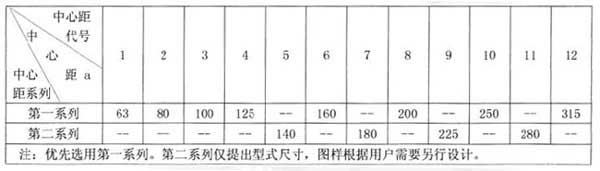 表1  中心距及其代號                 單位:mm
