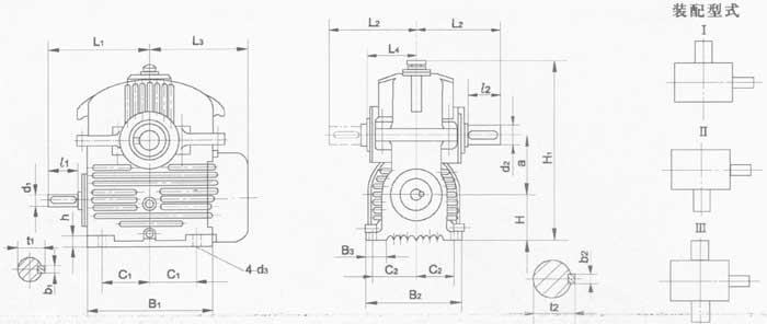 其中T-上置蝸桿;B-下置蝸桿;W-焊接機體和機蓋,未注為鑄造結構。