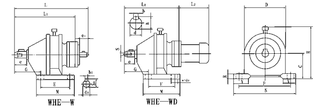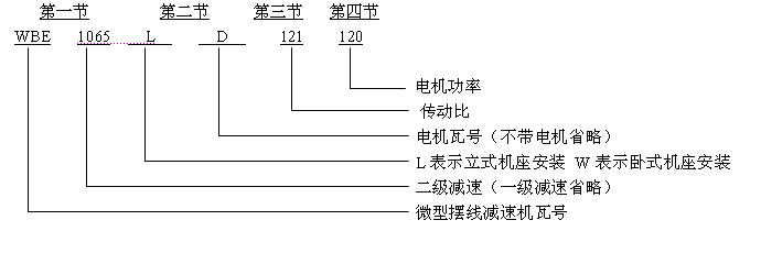 b、雙級減速比機型有WBE1065型、WBE1285型、WBE1510型。其減速比分別有:121、187、289、385、473、595、731、989、1225、1849。