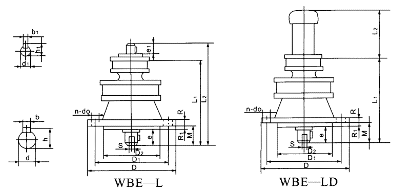WBLE、WBLED型立式雙級微型擺線針輪減速機外型及安裝