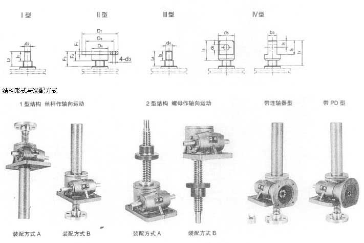 2型結構型式的絲杠頭部分為:I(圓柱型)和III(螺紋型)兩種形式。