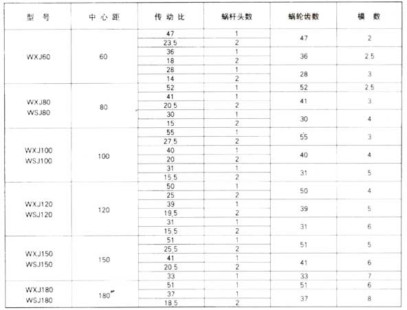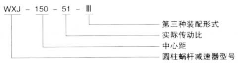 WXJ、WSJ蝸桿減速器的標記包括:型號、中心距、傳動比、裝配型式。
