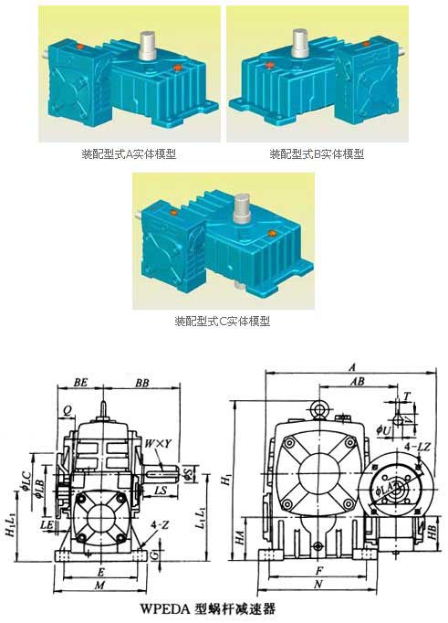 WPEDA型蝸桿減速器主要尺寸 /mm